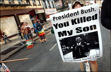 "Right wing scum, your time has come" and other clear messages ring out from the assembled masses. Despite the spin from Democrats (who want to pretend that their warmonger is simulataneously not involved with the protests but also that they are the harbinger of Democratic power) the message is clear from the assembled hundreds of thousands near the site of the 9/11 tragedy: Fuck Off Bush and the rest of the Warmongers.