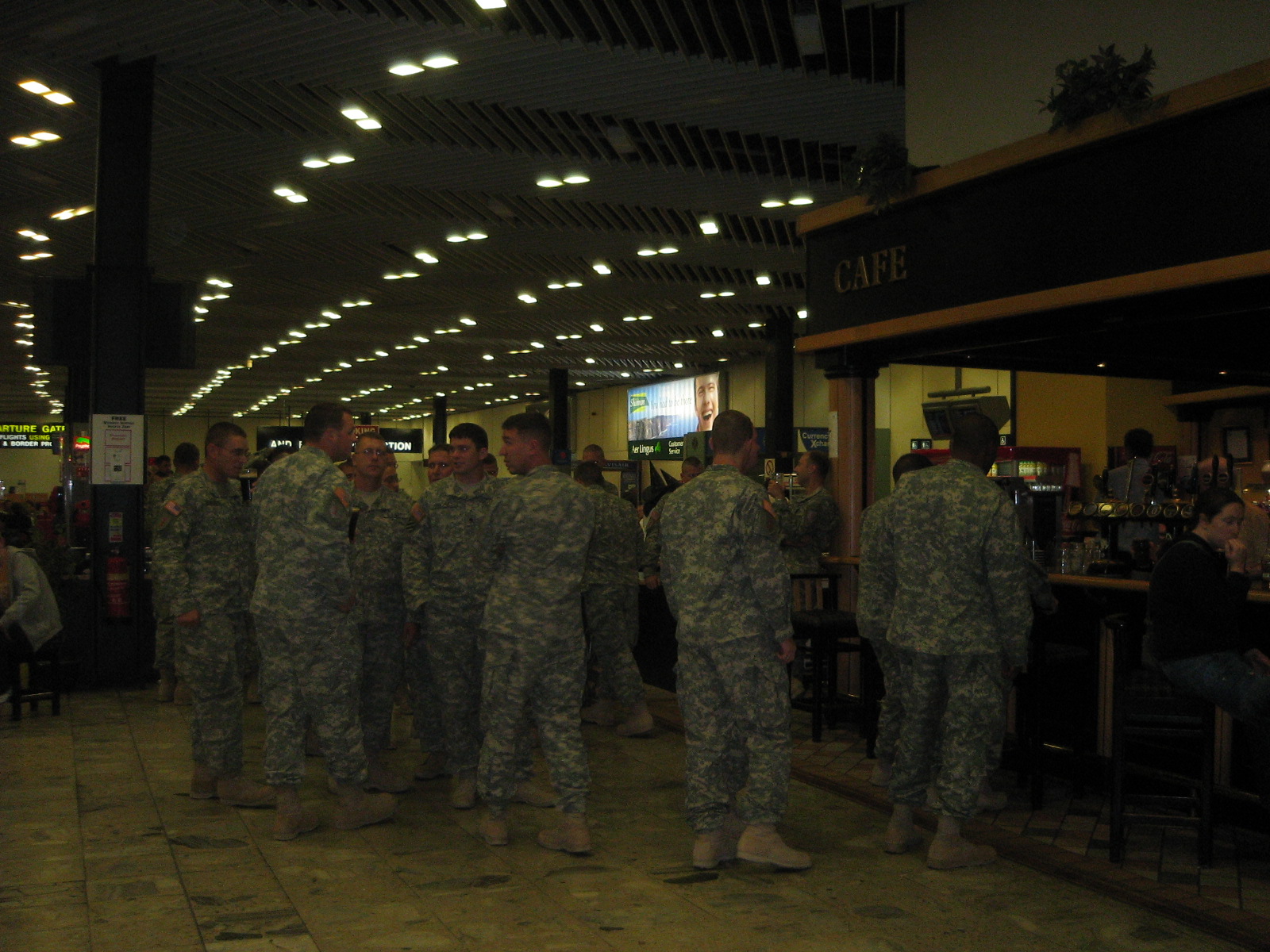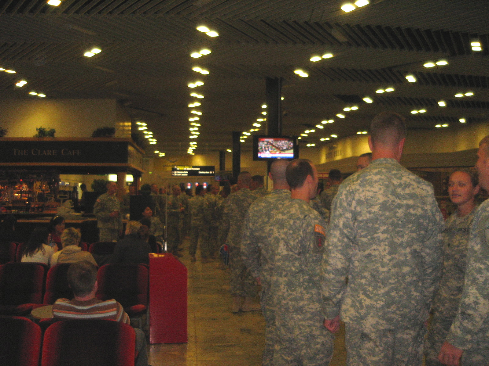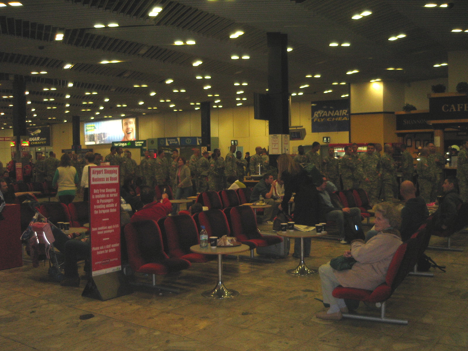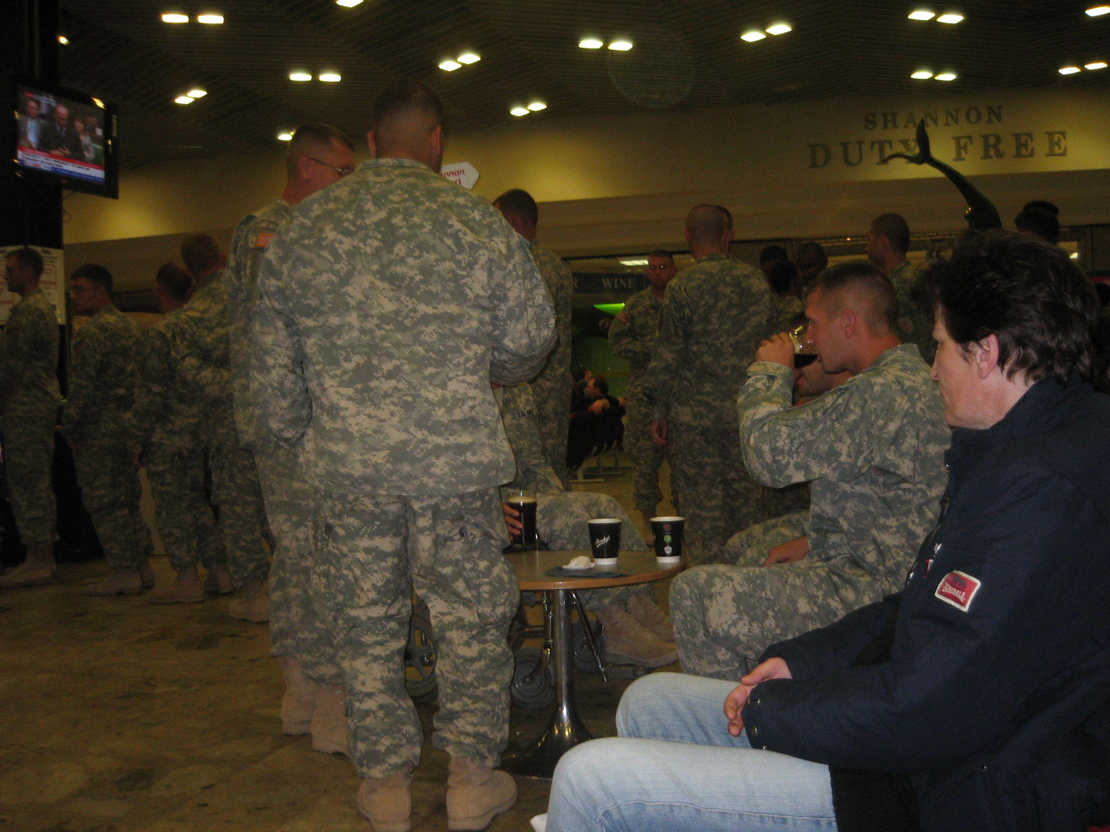 This was in the main departure lounge area in Shannon airport, two plane loads of troops walked in and went straight for the bar.